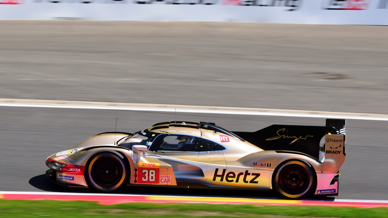 #38 - Hertz Team Jota, Porsche 963 LMDh, Jenson Button/ Phil Hanson/ Oliver Rasmussen, Einstellungen: Mindestgewicht: 1.037 Kilogramm, Maximale Leistung: 689 PS, Max. Energiemenge pro Stint: 904 Megajoule. Aufnahme am 11.5.2024 in Spa Francorchamps