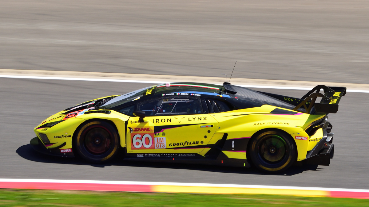 #85 Lamborghini Huracan LMGT3 Evo2, Iron Lynx, Fahrer: Claudio Schiavoni/ Matteo Cressoni/ Franck Perera. Aufnahme am 11.5.2024 in Spa Francorchamps