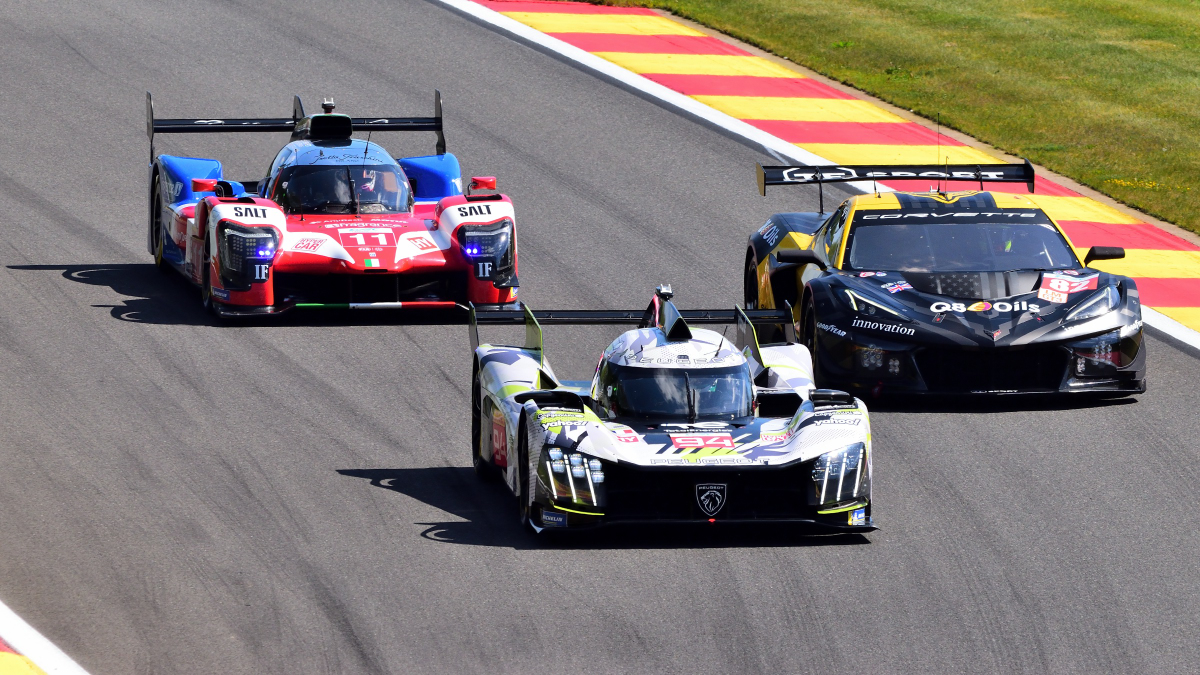 #94 Peugeot 9X8 LMH, Team Peugeot Total Energies, Fahrer: Paul di Resta/ Loic Duval, FIA WEC vor: Corvette Z06 LMGT3.R und #11 Isotta Fraschini Tipo6-C, 6h Spa Francorchamps 11.5.2024