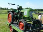 Fendt Dieselross F12 HL steht huckepack bei der Oldtimeraustellung von Möbel-Punkt in Thalau, Mai 2012