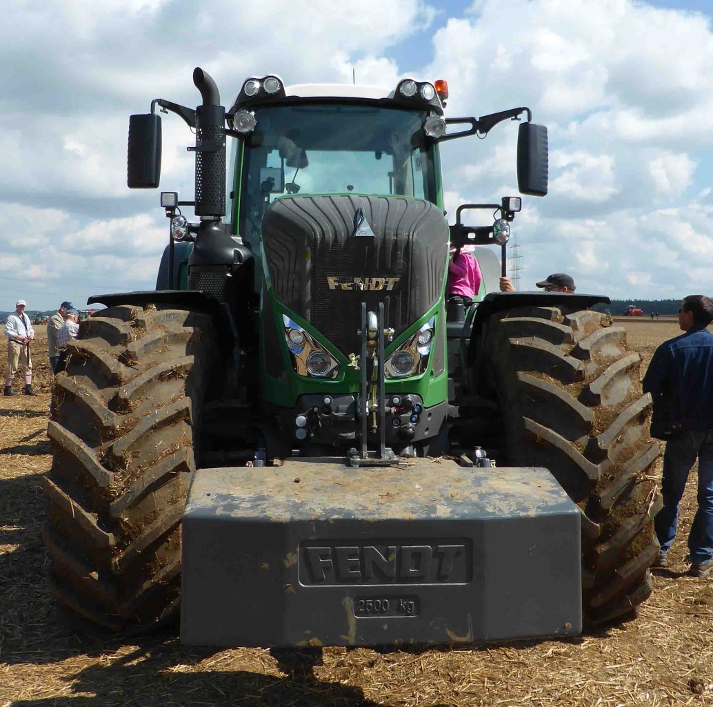 2,5 t Eisen hat man dem Fendt 939 Vario auf die Vorderachse gepackt, gesehen beim Fendt - Feldtag in Wadenbrunn im August 2014