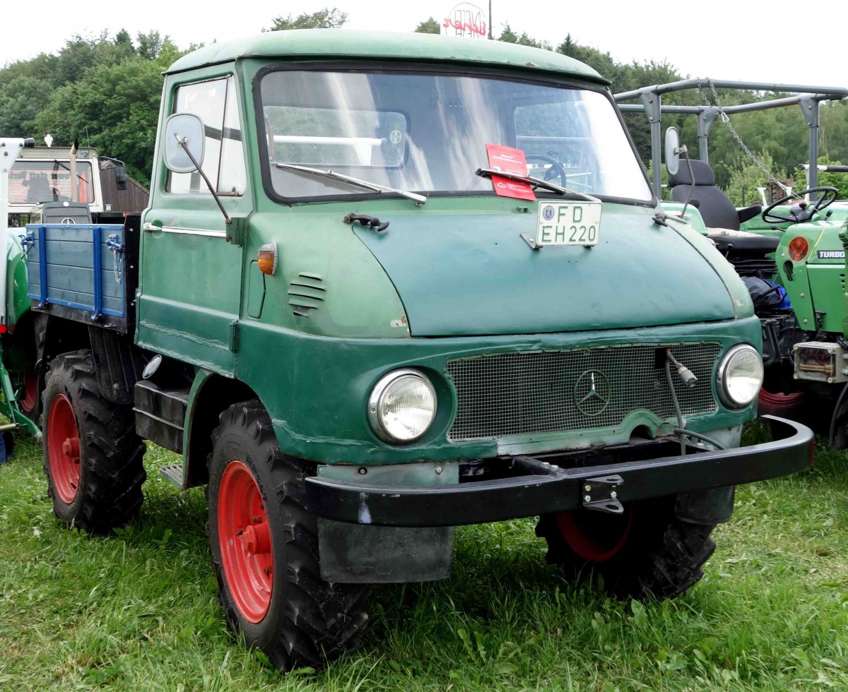 Unimog steht im Juni 2014 beim Oldtimertreffen an der Ebersburg
