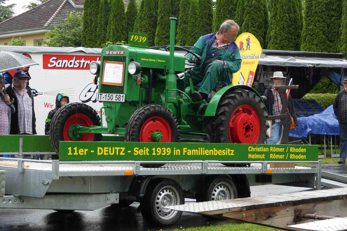 =11er Deutz rollt vom Transportanhänger, gesehen im Juli 2016 bei der Oldieausstellung in Gudensberg