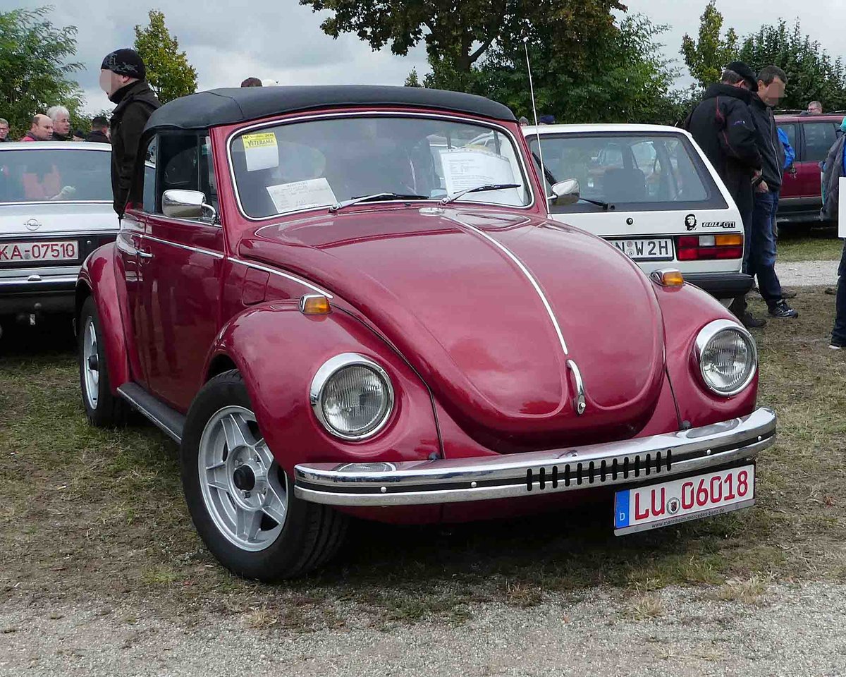 =VW Käfer Cabrio, fotografiert bei dem Veterama 2016 in Mannheim, Juli 2016