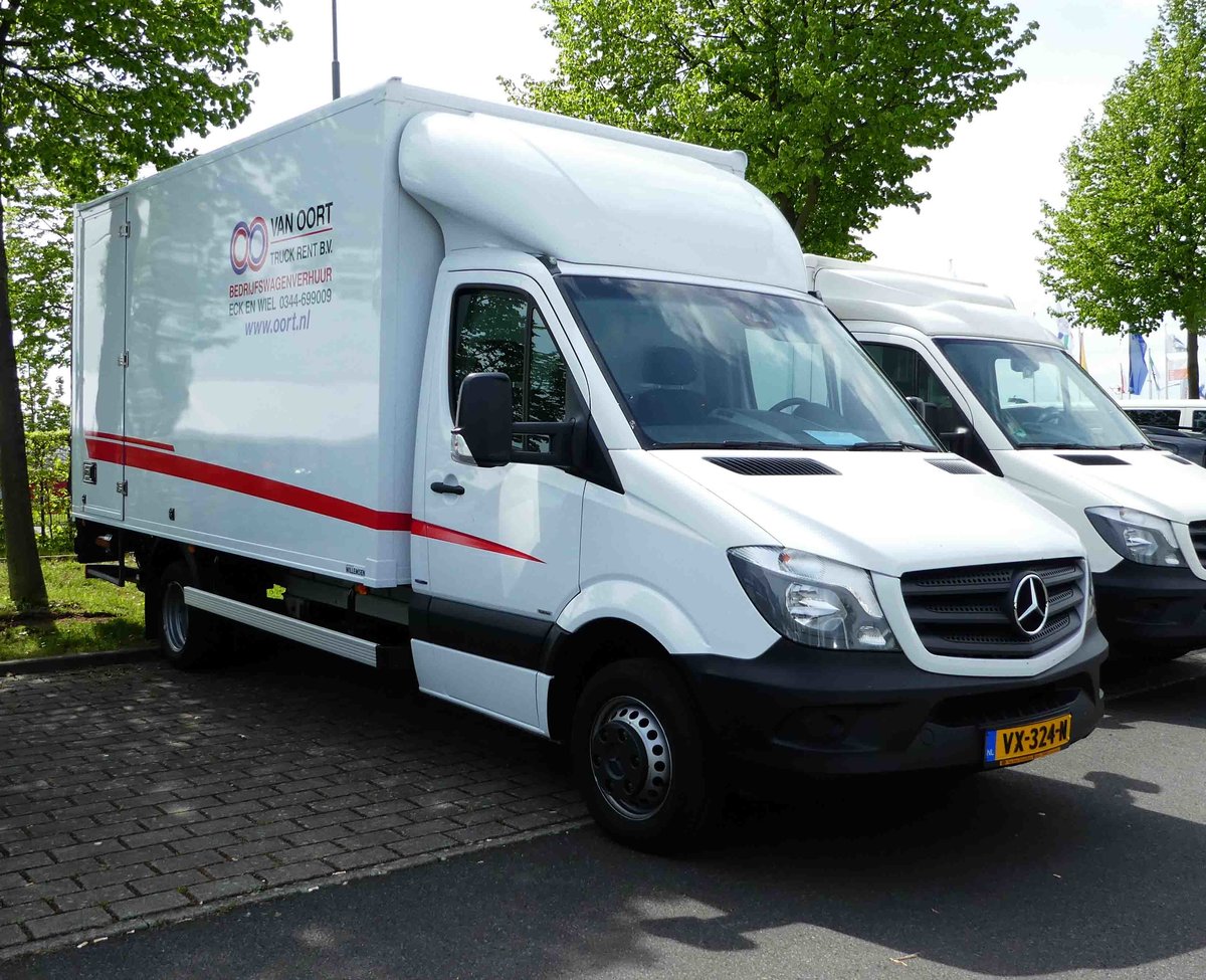 =MB Sprinter von "VAN OORT" aus den Niederlanden, abgestellt auf dem Parkplatz der RettMobil im Mai 2017