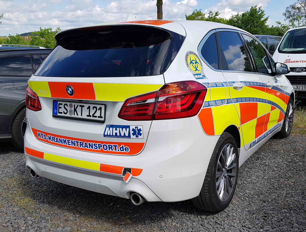 =BMW von KTS-Krankentransport steht auf dem Parkplatzgelände der RettMobil 2022 in Fulda, 05-2022