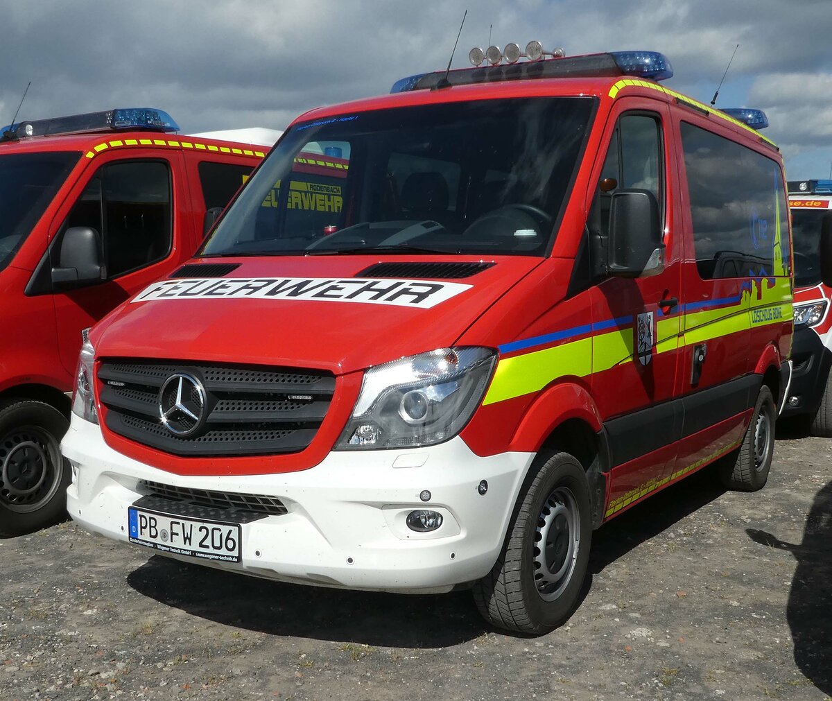 =MB Sprinter als Kommandowagen der Feuerwehr DELBRÜCK-BOKE steht auf dem Parkplatz der RettMobil im Mai 2022