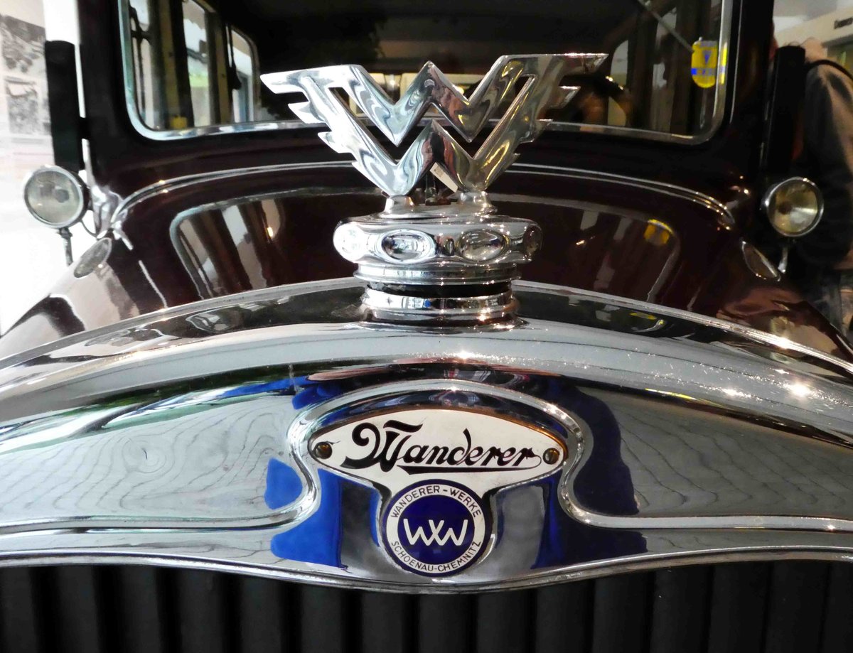 =Kühlerfigur eines Wanderer W11, gesehen im August Horch Museum Zwickau, Juli 2016.