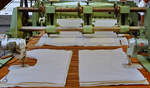 Zuschnitt von Baumwollvlies für die PKW Beplankung. (August Horch Museum Zwickau, August 2018)