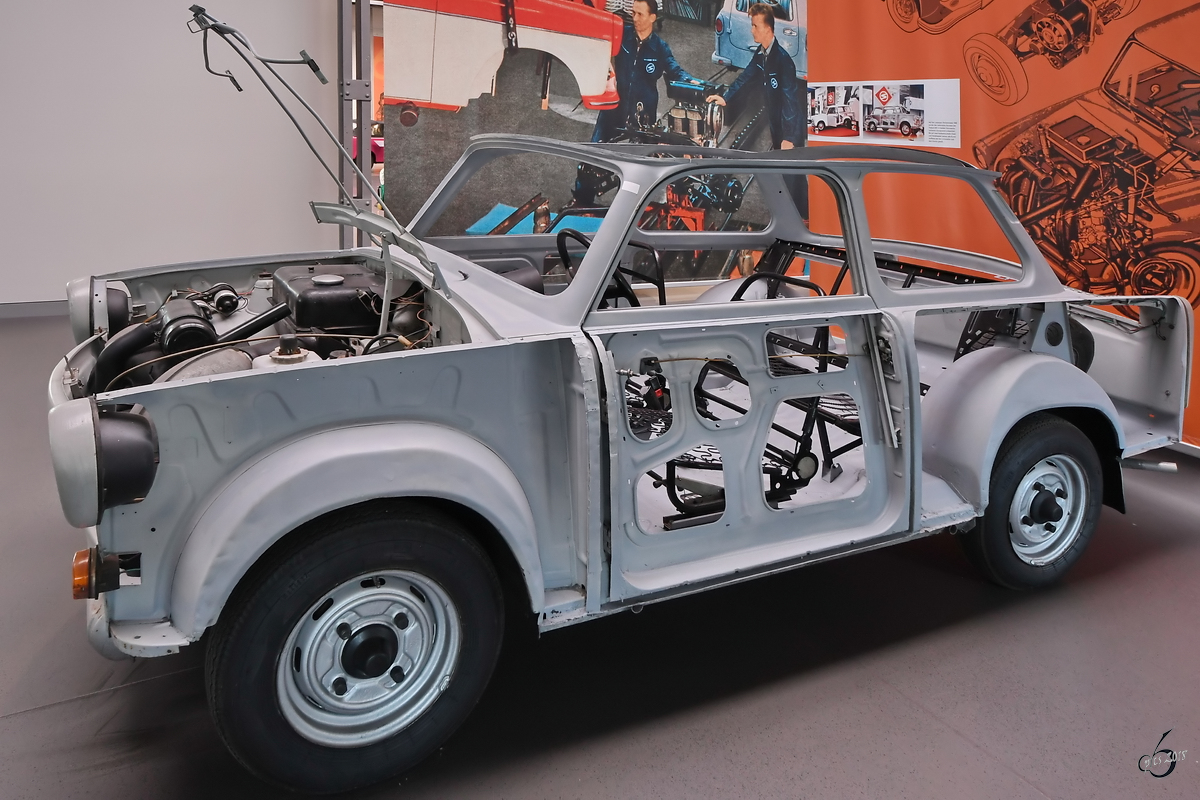 Darstellung des "Blechanteils" eines Trabant 601. (August Horch Museum Zwickau, August 2018)