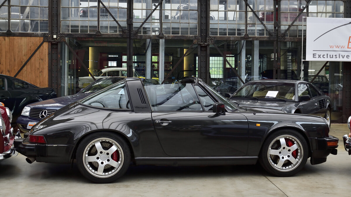 Porsche 911 Targa, wartet auf weiterfahrt in der Remise Düsseldorf, am 6.8.21 gesehen.