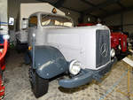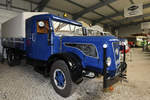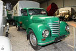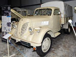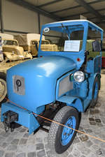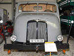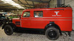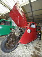 Ein Polizeimotorrad MZ ETZ-250 steht im Sächsischen Nutzfahrzeugmuseum Hartmannsdorf. (August 2018)