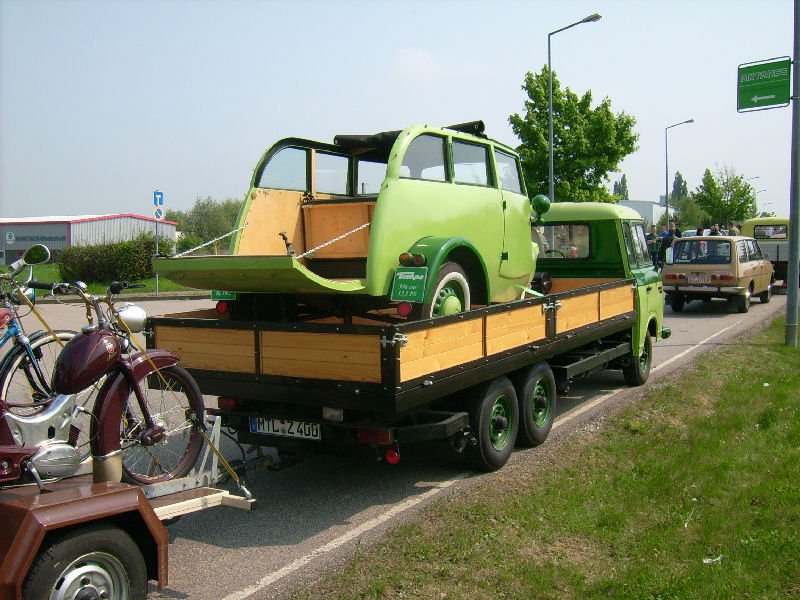 Heckansicht des Barkas 3Achser und des goliath Dreirades zum Oldtimertreffen in Hartmannsdorf