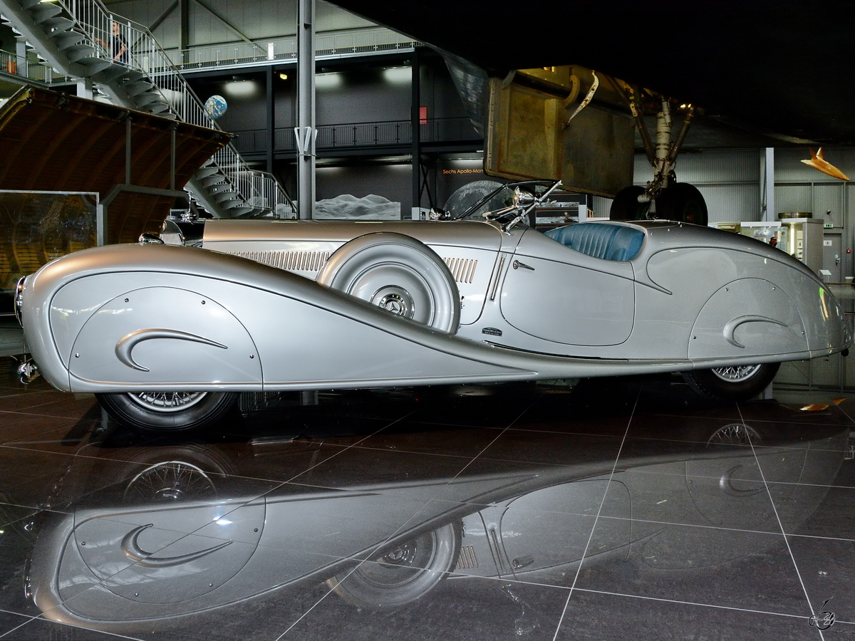 Dieser Mercedes-Benz Typ 500K wurde mit einer Stromlinienkarosserie von Erdmann & Rossi ausgeliefert und war Mitte Mai 2014 im Technik-Museum Speyer zu sehen.