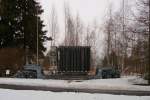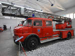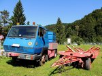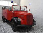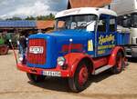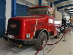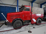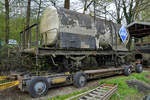 Ein Kaelble KV 633 ZB LKW mit einem einteiligen DB-Straßenroller LR40, hier im Bild mit einem Kesselwagen als Ladung. (Oldtimermuseum Prora, April 2019)