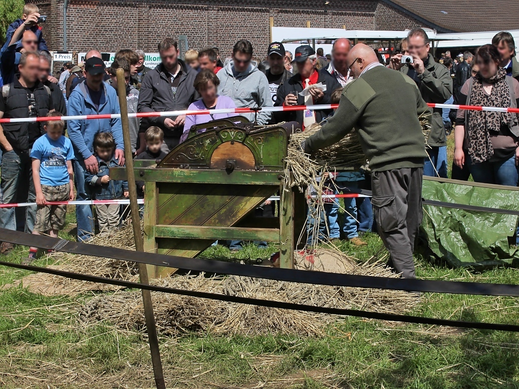 Demonstration einer Dreschmaschine.