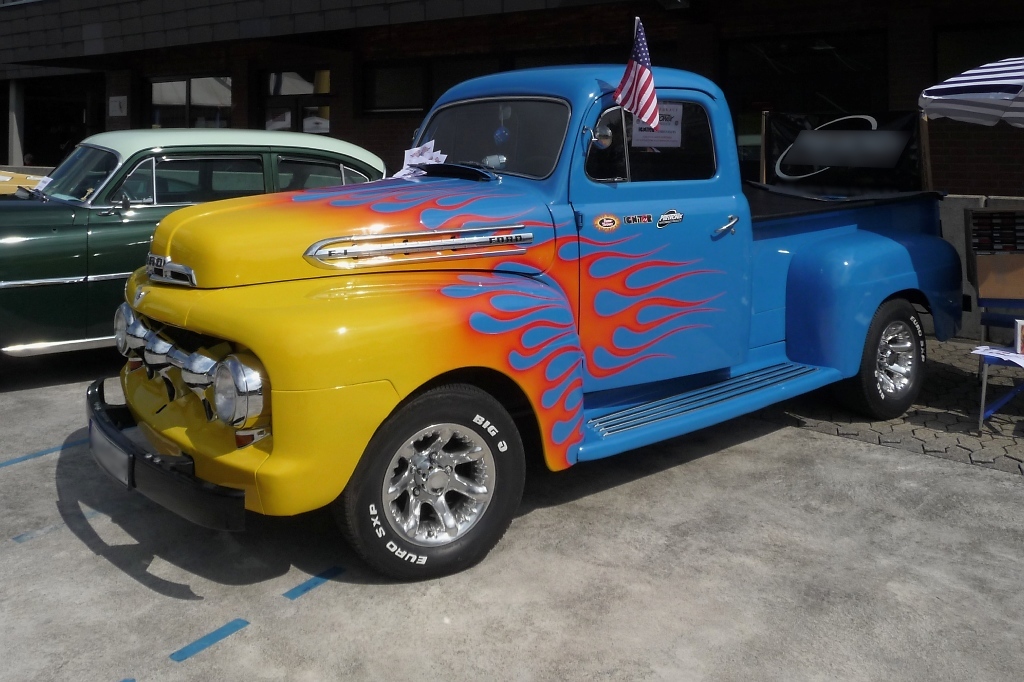Der Ford F-1, gebaut 1948 - 1952, war der erste moderne Truck von Ford und Urahn der F-Serie (F-100, F-250, F-350, usw). Gesehen auf der US-Car-Show in Grefrath im August 2010.