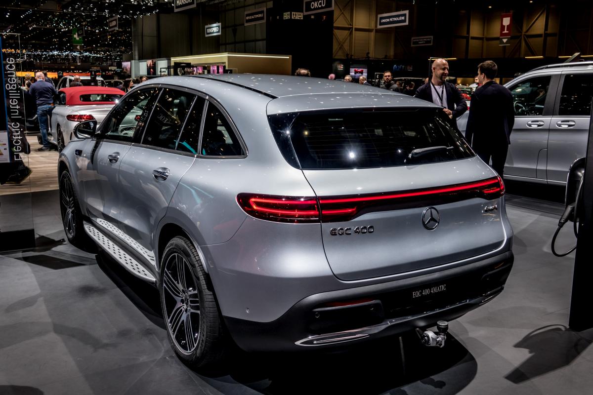 Rückansicht: Mercedes-Benz EQC SUV mit Elektroantrieb. Foto: Autosalon Genf, 2019.