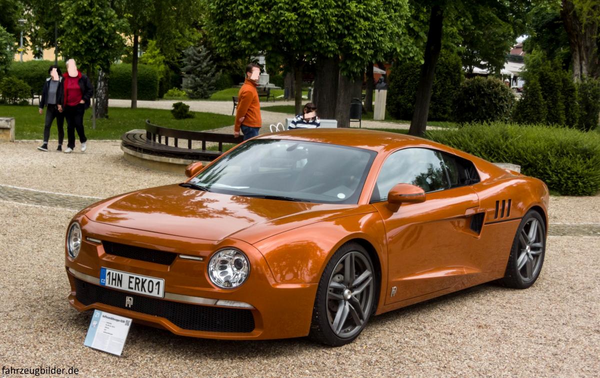Hoffmann & Nouvague R200 im Memorian Skoda RS130. Der technische Basis ist ein Audi R8, die Frontscheinwerfer kommen vom Bentley Mulsanne. IV. Balatonfüred Concours d'Elegance ausgestellt (Mai 2017).