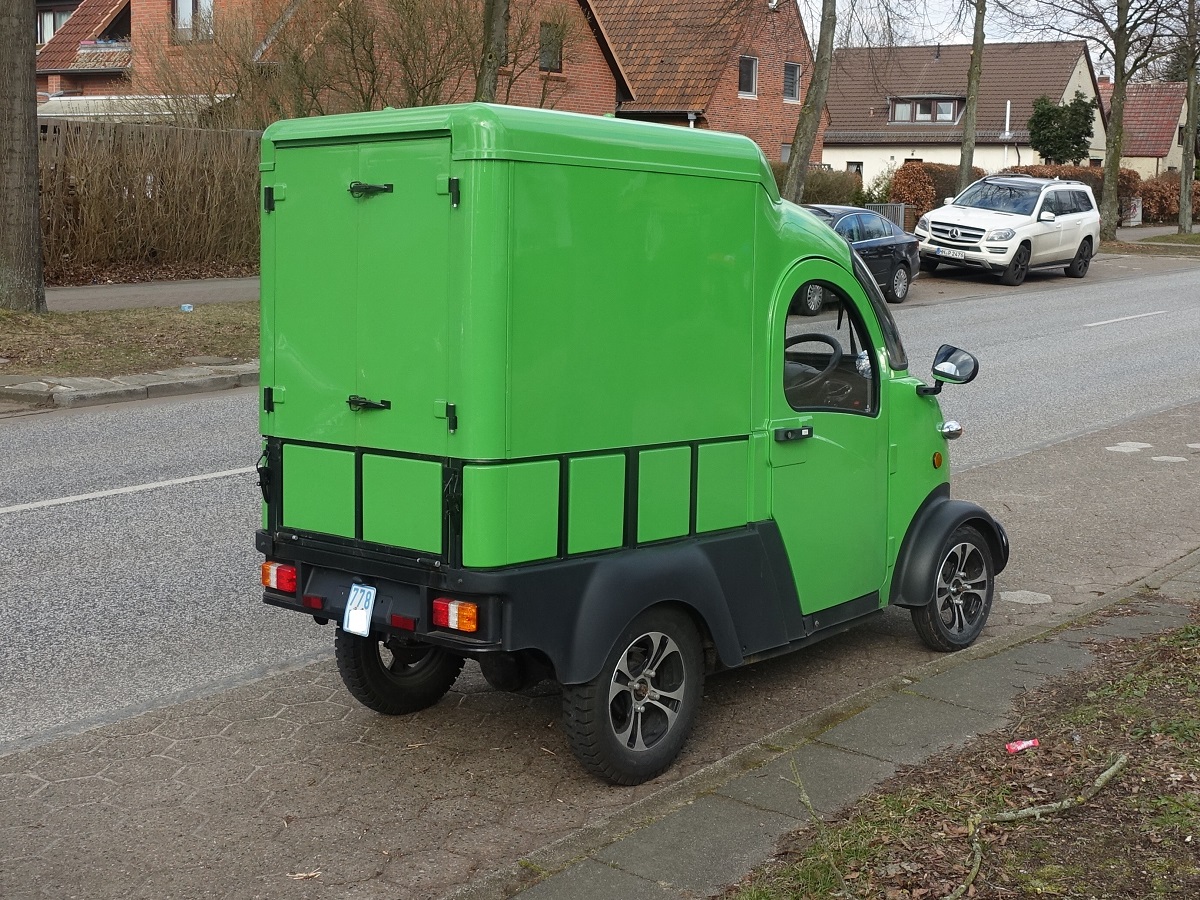 Elektrofrosch MAX am 6.3.2022 in HH-Billstedt / Elektro Kastenwagen, 4,0 kW (5,4 PS), max 45 km/h, je nach Akkusatz 60 oder 120 km Reichweite, 350 kg Zuladung, Zulassungsfrei /