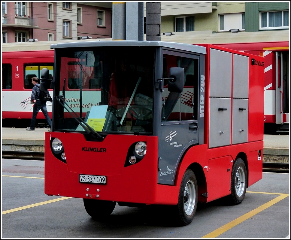 Klingler MTEP 200 Elektomobil, der MGB gesehen am Bahnhof in Brig am 22.05.2012.