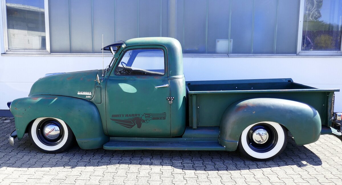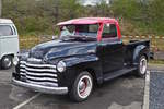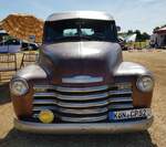 Chevrolet Panel Van 3100 aus dem Jahr 1953. Die Pickup Trucks und Panel Vans der Nachkriegsjahre (1947 bis 1955) ordnet man als Nutzfahrzeuge im sogenannten "Advance-Design" ein. Die Modellbezeichnung 3100 sagt aus, das der Van eine Nutzlast von 0.5to hat. Angetrieben wird der Lieferwagen von einem Sechszylinderreihenmotor mit einem Hubraum von 216 cui (3547 cm³) und leistet 92 PS. Oldtimertreffen an Mo´s Bikertreff in Krefeld am 17.05.2020. Natürlich unter Einhaltung aller momentanen Bestimmungen und Regeln.