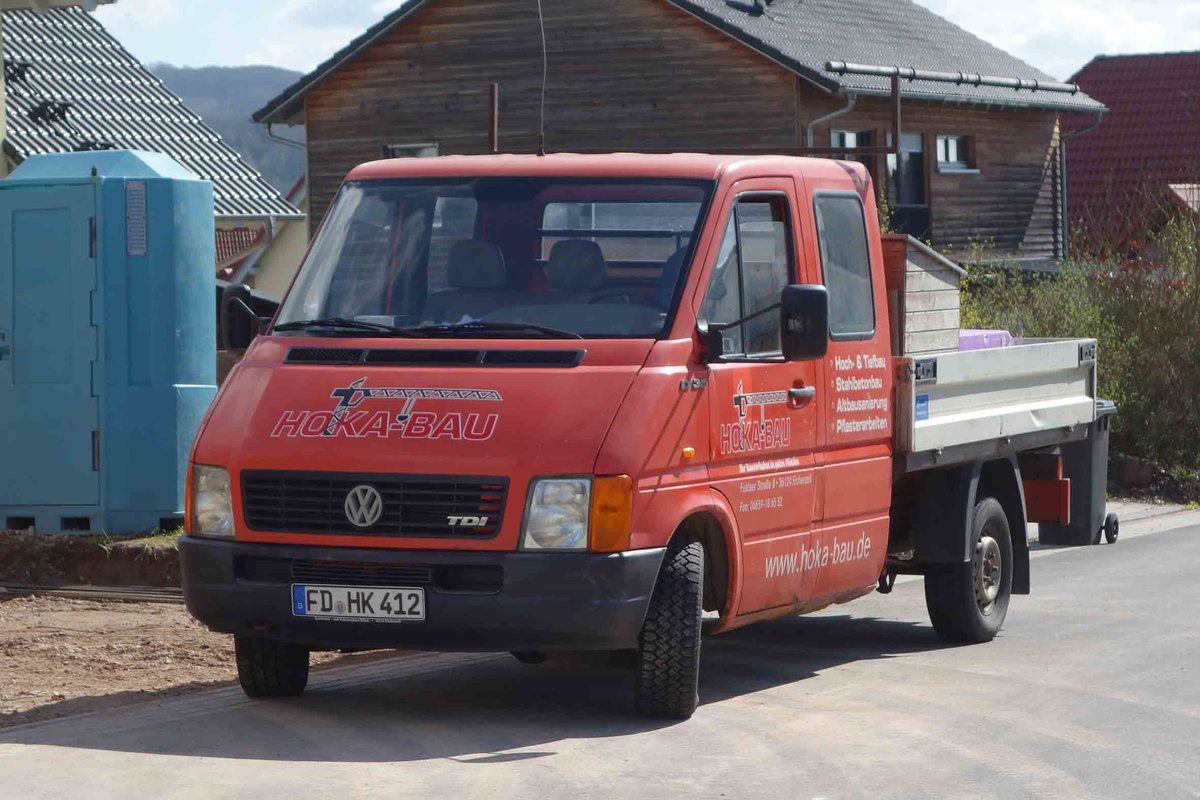 VW LT TDI von "HOKA-Bau" steht auf einer Baustelle in 36100 Petersberg-Marbach im April 2016