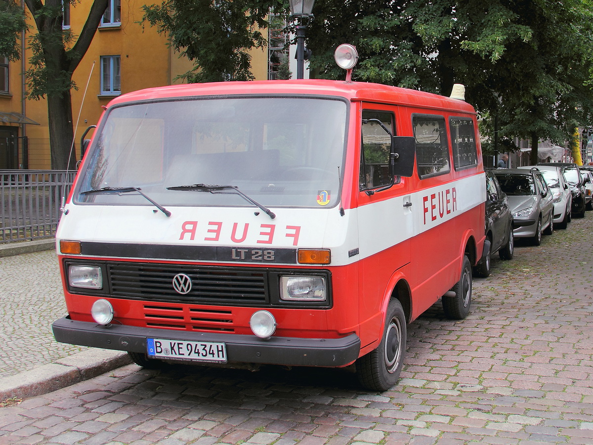 VW LT 28-35 aus Buckow (Märkische Schweiz), gesehenen am 05. Juli 2017 in Berlin Neukölln am Richardplatz in der Kirchgasse.