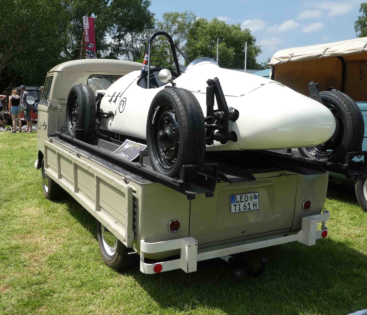 =VW T1 mit Ladung steht auf dem Ausstellungsgelände in Bad Camberg anl. LOTTERMANN-Bullitreffen im Juni 2019
