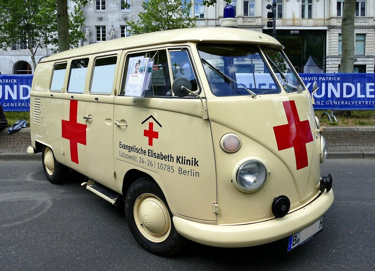 VW T1 Krankentransportwagen KTW. Berlin-Charlottenburg im Mai 2019. T 1