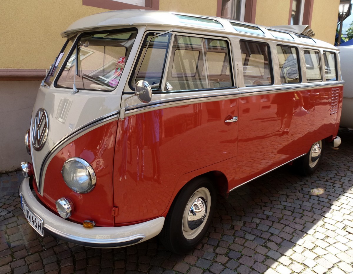VW Typ 1, Kleintransporter "Bulli", die Serienfertigung begann in den 1950er Jahren, zu sehen beim "Waldkircher Sonntag", Juli 2014
