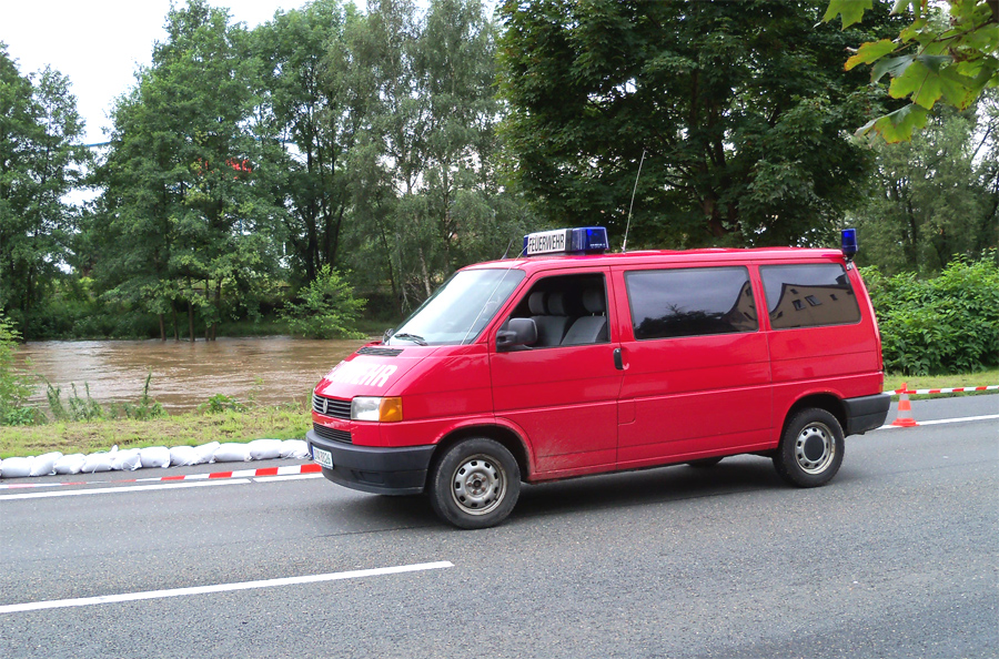 Mannschaftstransportwagen MTW (Volkswagen T4) der Feuerwehr Wilkau-Haßlau/Sachsen zum Hochwasser 2010 an der Zwickauer Mulde