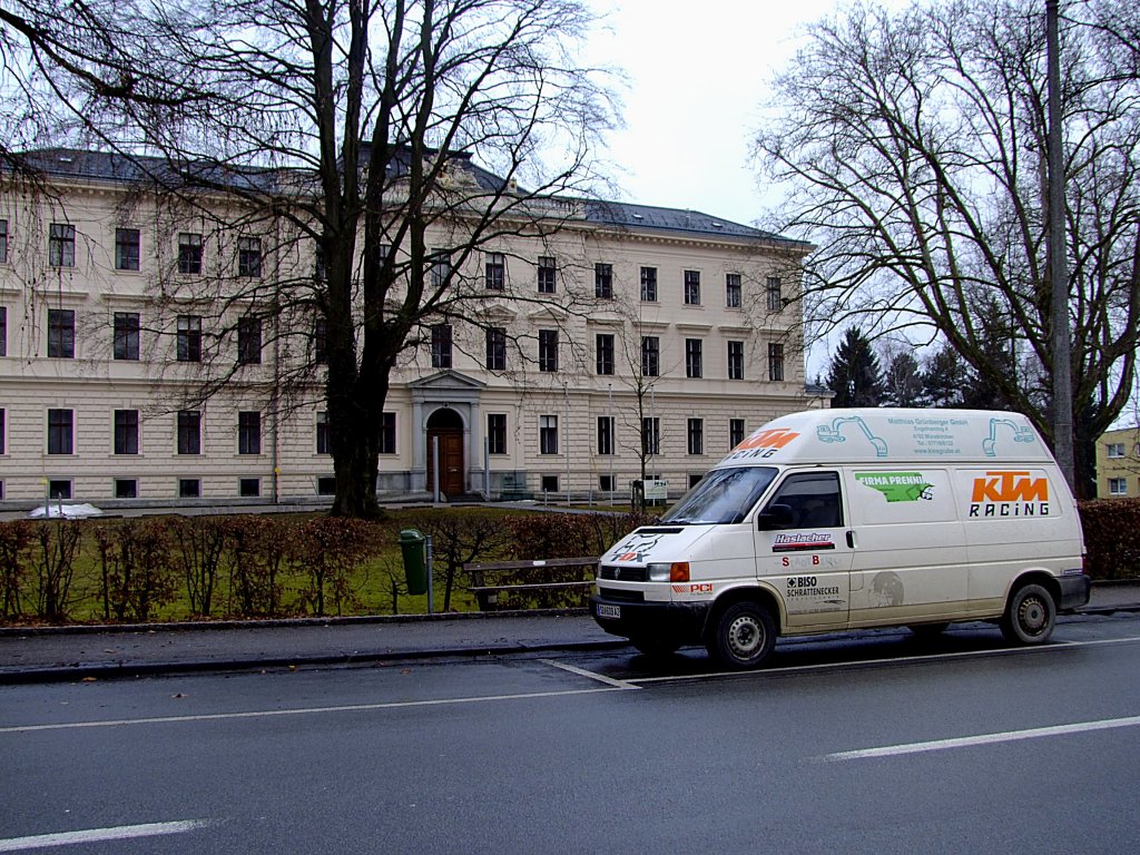 VW T4 KTM-Racing, vor dem Kreisgerichtsgebäude in Ried; 120225