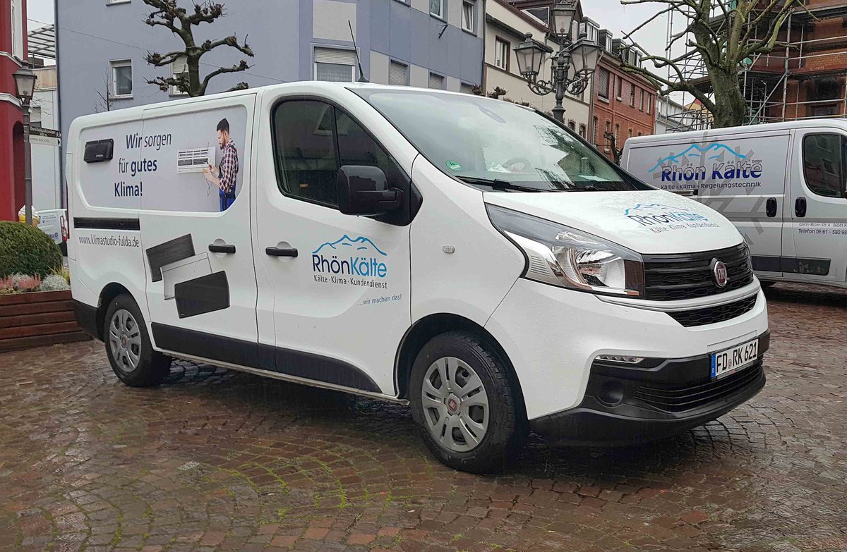 =Fiat Ducato von RHÖN KÄLTE steht im Februar 2021 auf einer Baustelle in Hünfeld