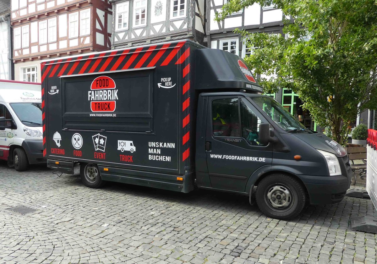 =Ford Transit von FOODFAHRBRIK steht auf dem Wochenmarkt in Melsungen, 10-2020