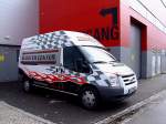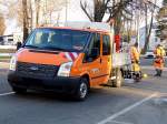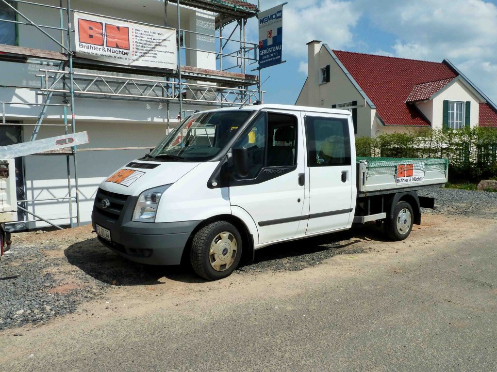Ford Transit als Doppelkabiner mit Ladepritsche steht auf einer Baustelle in 36100 Petersberg-Marbach, Mai 2013