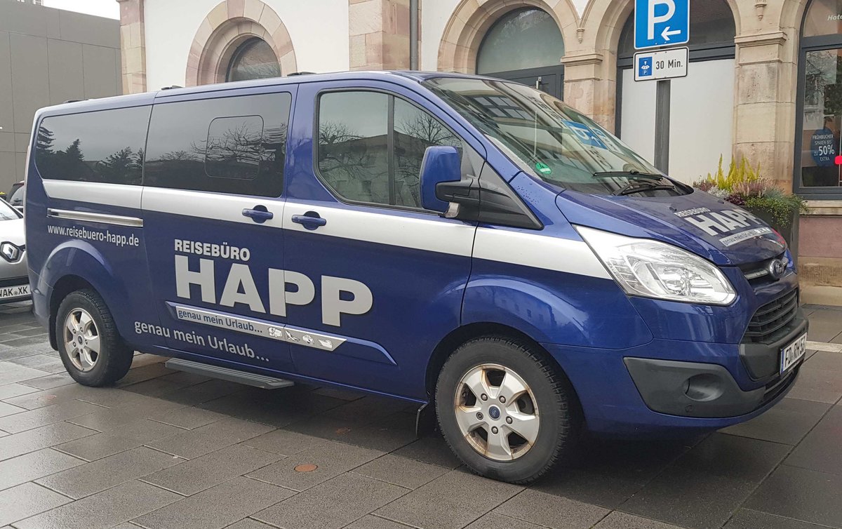 =Ford Transit vom Reisebüro HAPP steht am Bahnhhof in Hünfeld, 01-2020