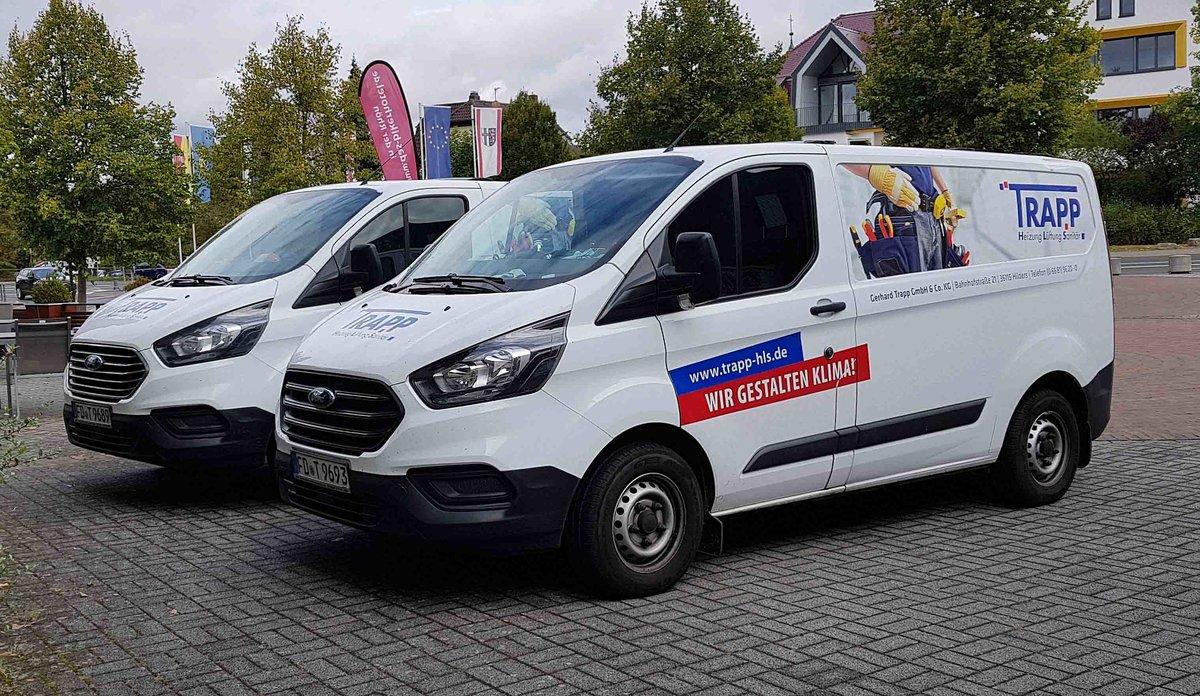 =Ford Transit vom Heizungsbauer TRAPP stehen im September 2020 in Hünfeld