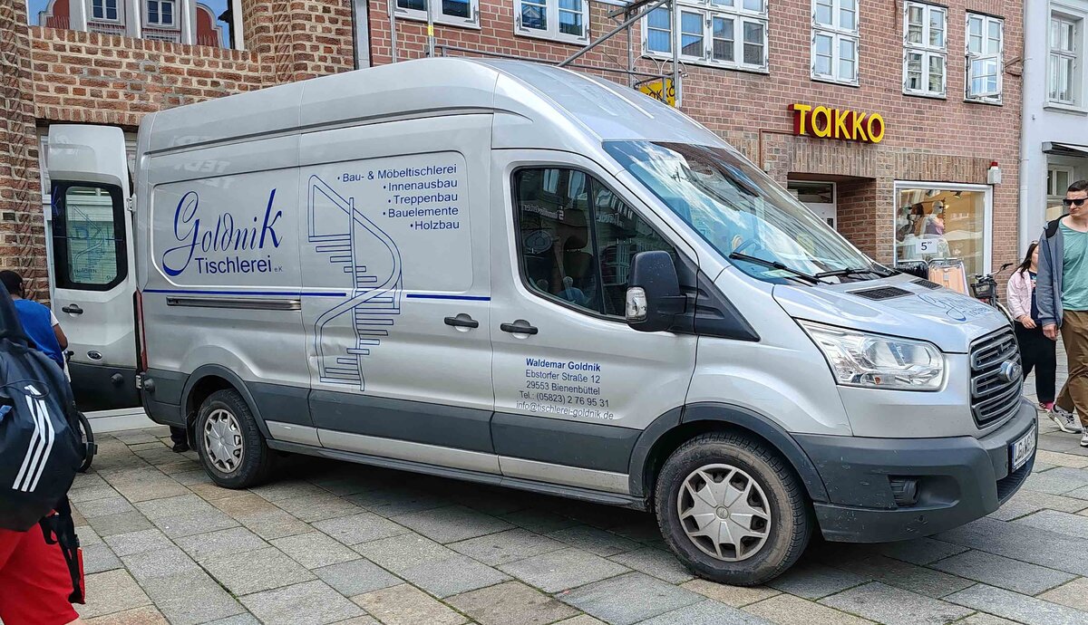 =Ford Transit der Tischlerei GOLDNIK steht im Juni 2024 in Lüneburg