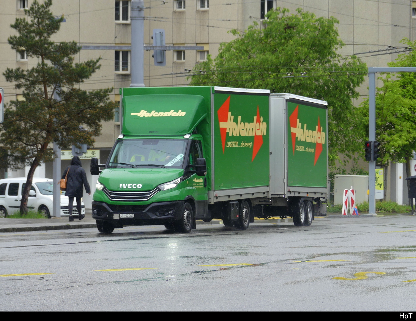 IVECO Kleinlaster mit Pritschenaufbau und Anhänger unterwegs in der Stadt Zürich am 2024.05.07