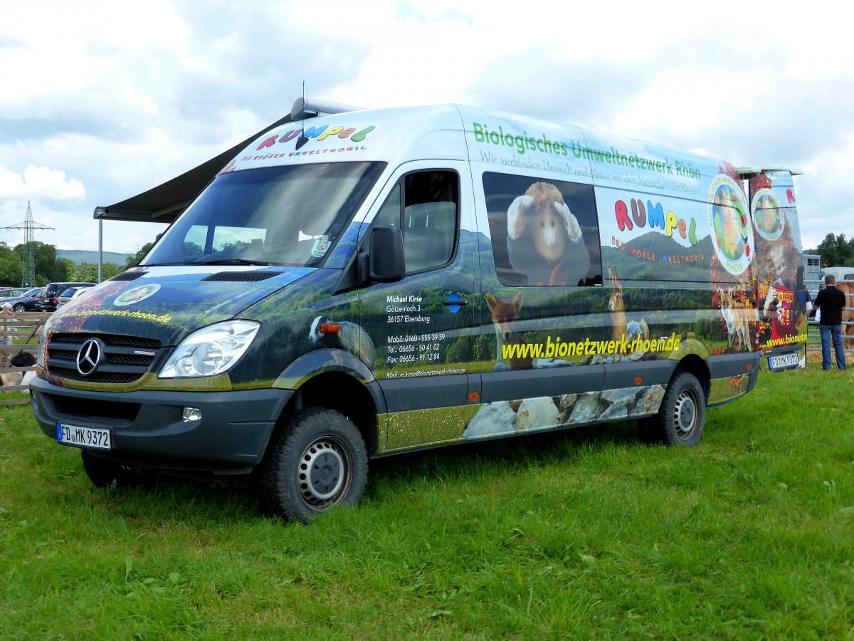 MB Sprinter als Rumpel - das Rhöner Umweltmobil gesehen bei der Kreistierschau des LK Fulda in Petersberg-Melzdorf, Juni 2014