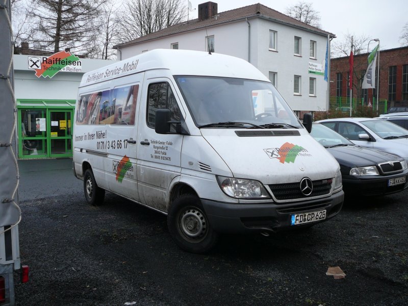 MB Sprinter als Servicefahrzeug der Raiffeisenwerkstatt Fulda am 18.12.2008 abgestellt auf dem Betriebshof