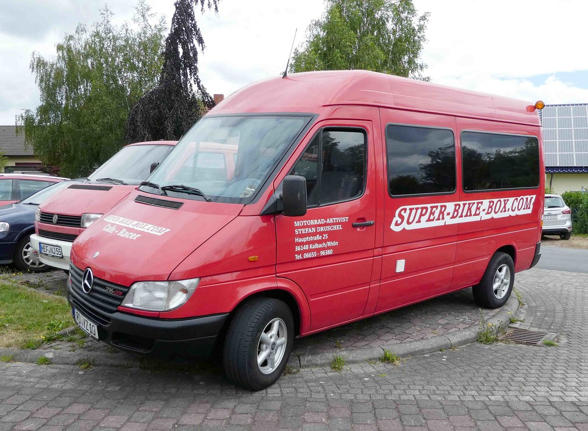 =MB Sprinter der SUPER-BIKE-BOX, gesehen bei den Motorrad-Oldtimer-Freunden Kiebitzgrund im Juni 2018