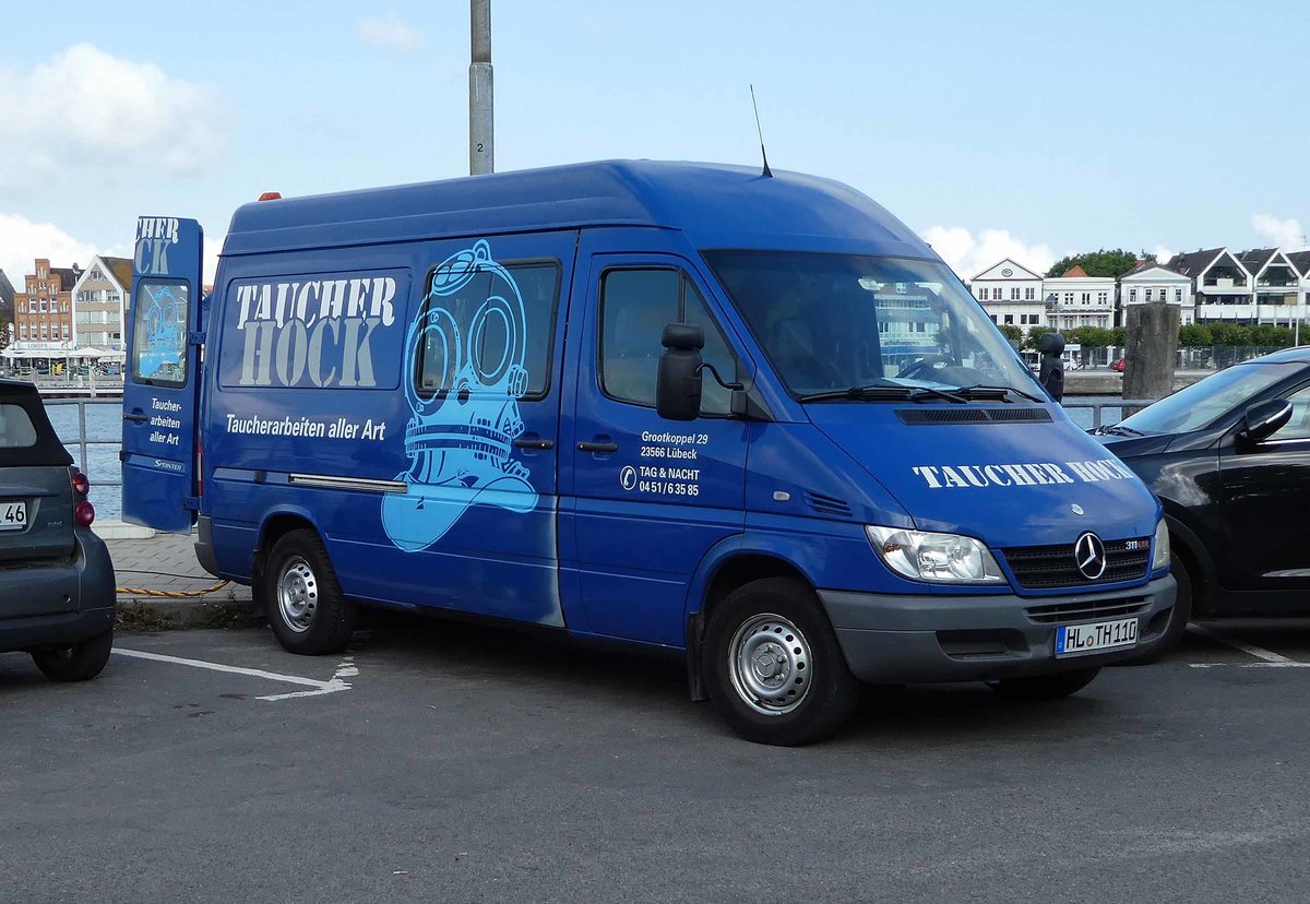MB Sprinter von TAUCHER-HOCK aus Lübeck steht im September 2018 in Travemünde