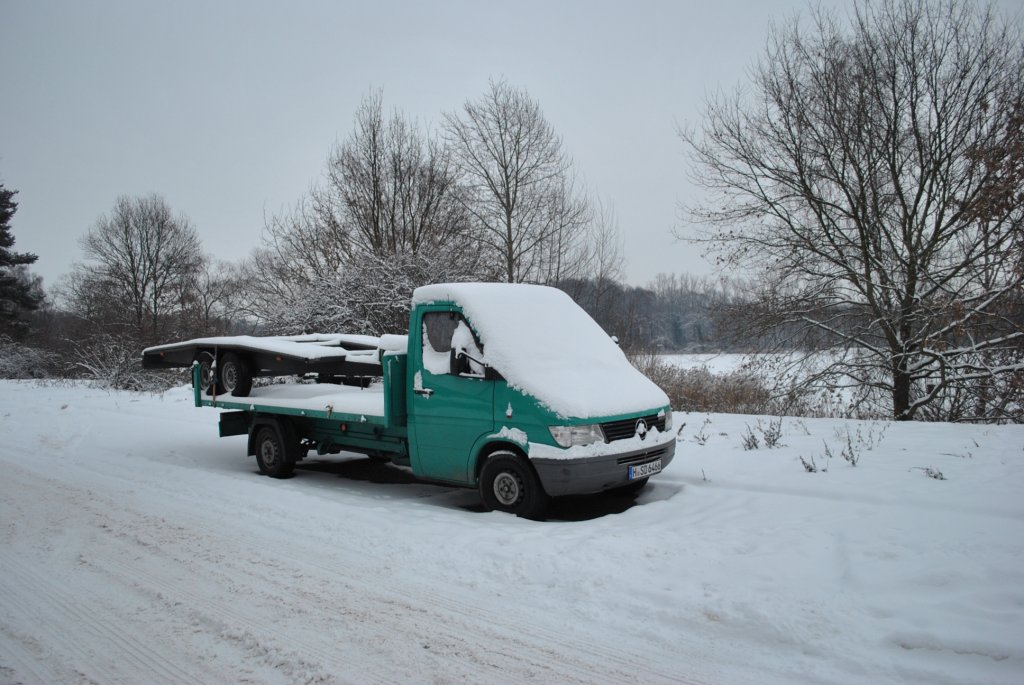 Dieser Mercedes Sprinter, hatte am 19.12.2010 einen Hänger auf der Laderampe.