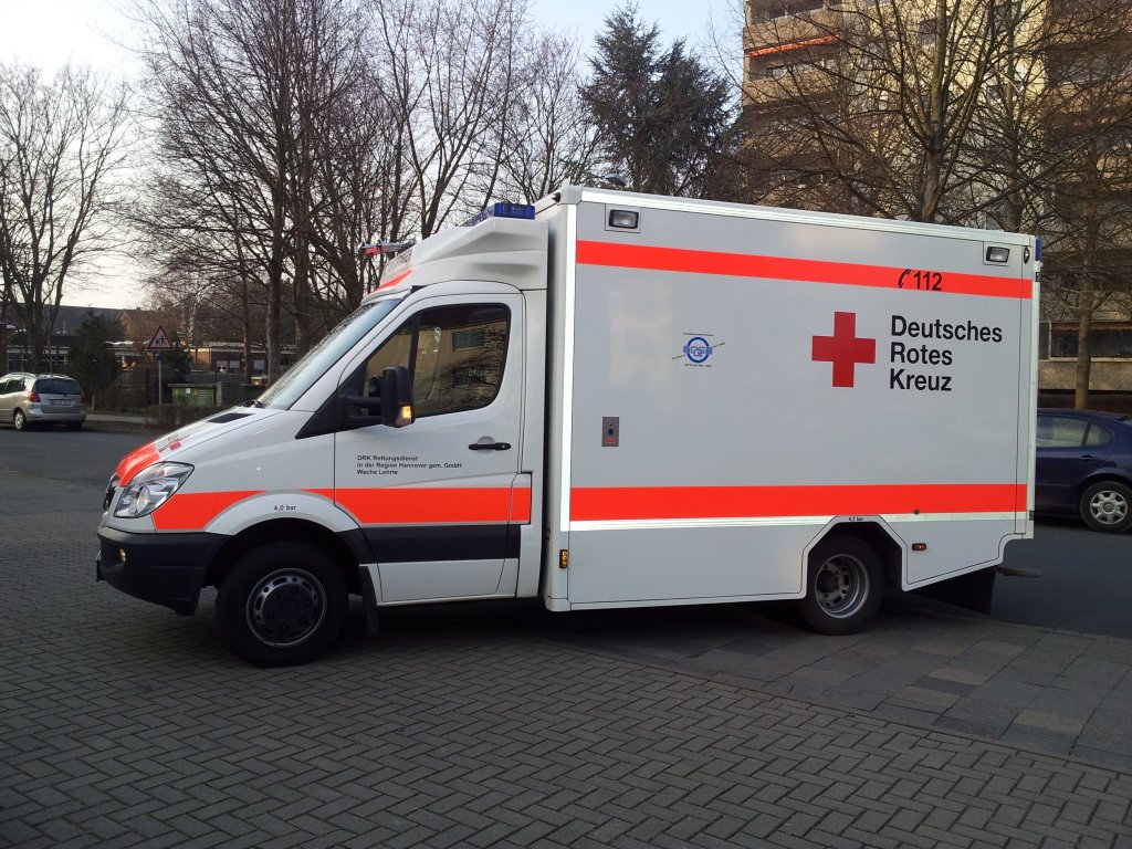 Mercedes Sprinter, als RTW am 06.03.2012 in Lehrte.