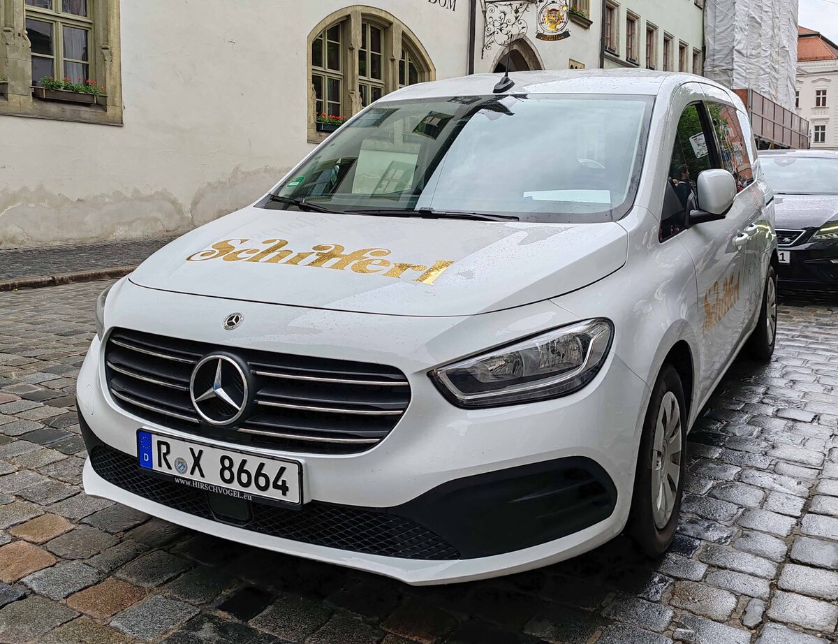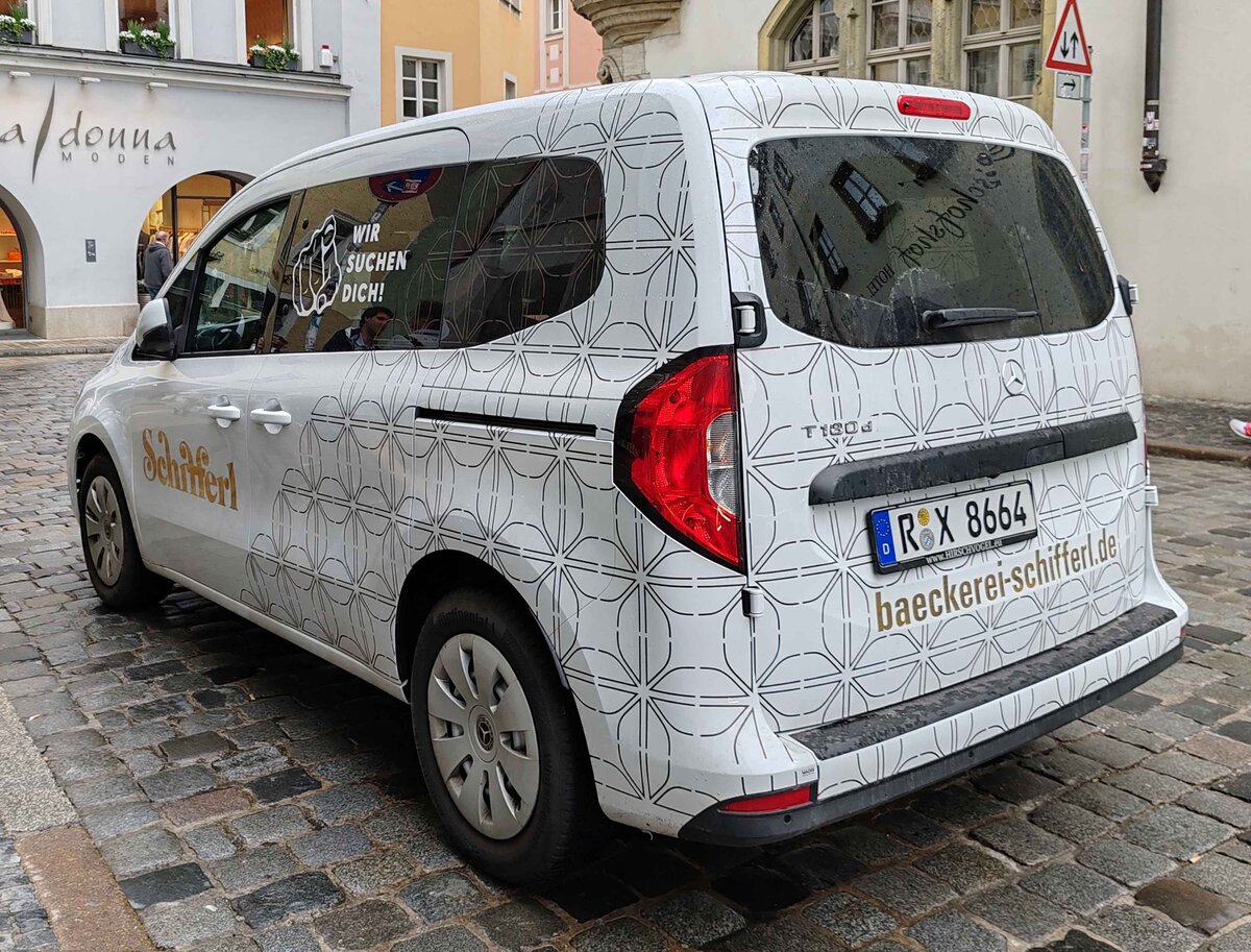 =MB T-Klasse der Bäckerei SCHIFFERL, gesehen in Regensburg im Mai 2025