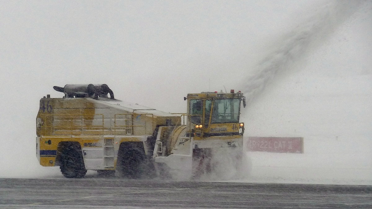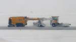 Ein älterer LADOG TH 50 Compact mit Kehrrolle und Heckstreuer im Schneeräumdienst in Berlin der Fa. Kanold am 21.01.22 Berlin Marzahn.