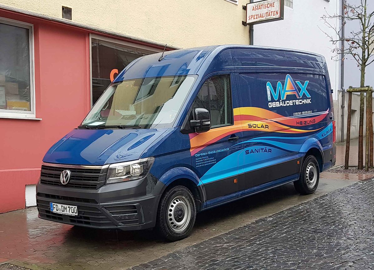 =VW Crafter von "MAX-Gebäudetechnik" steht im Januar 2021 in Hünfeld