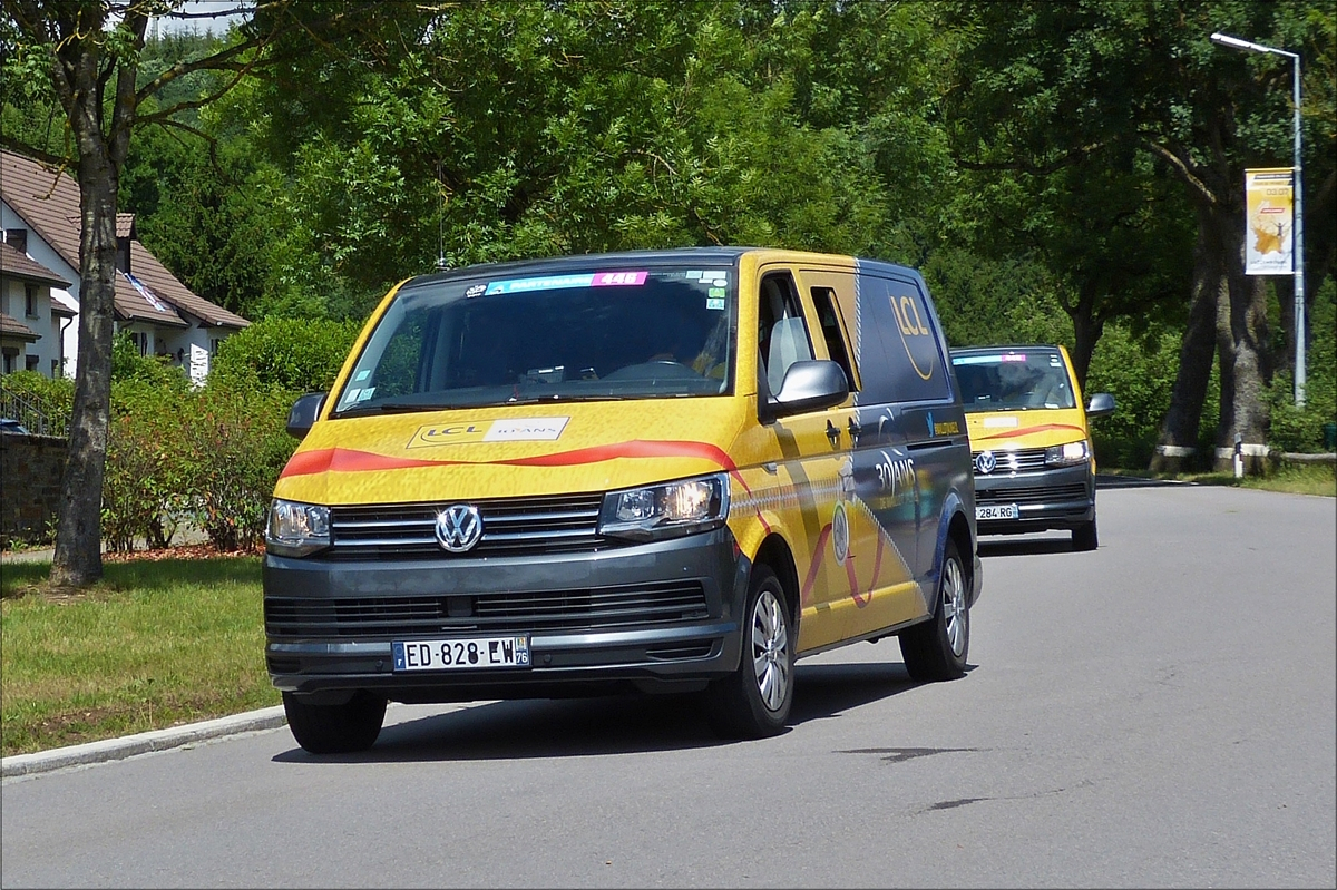 VW T6 in der Caravanne du Tour auf den Straßen von Luxemburg unterwegs. 03.07.2017.
